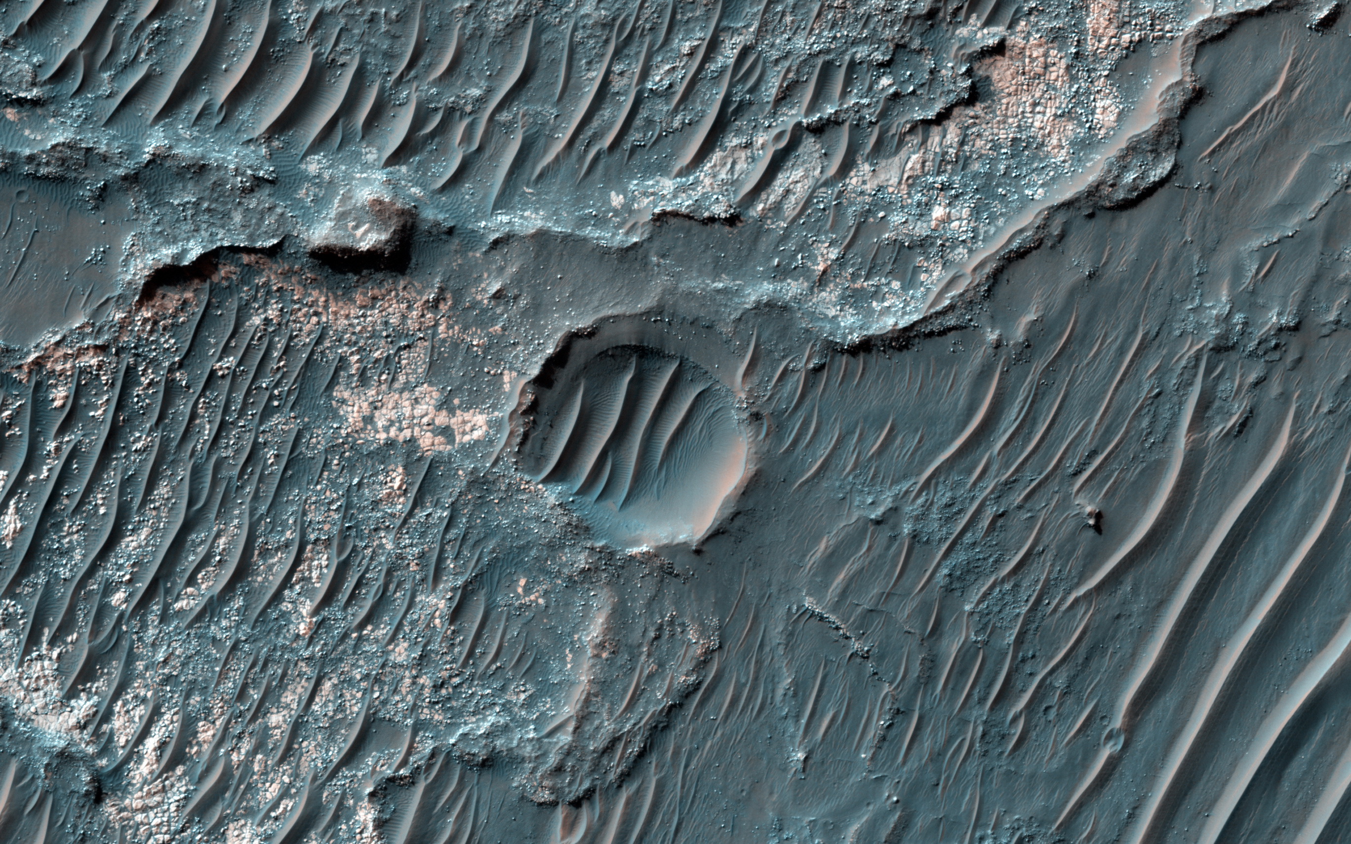 Главная » Фотоальбом » Орбитальные » Орбита Марса » Породы в эрозионном кратере